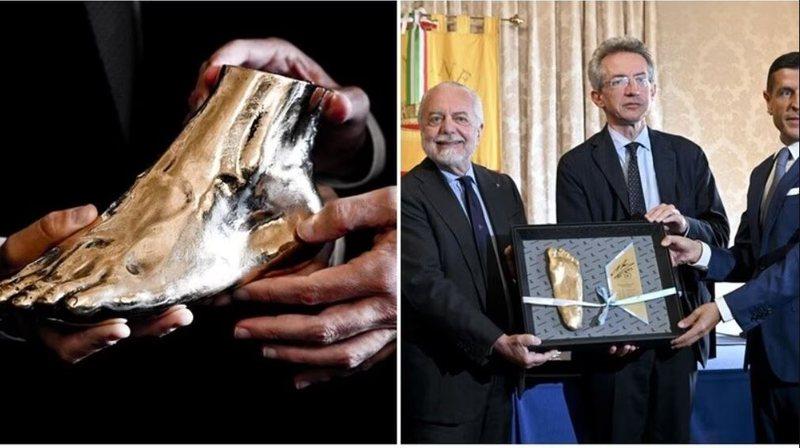 E ekspozuar në “Quartieri Spagnoli” përballë murales gjigante të “Pibe de oro”, vepra është rezultat i një skanimi tredimensional të të majtës magjike të fenomenit të dikurshëm argjentinas.