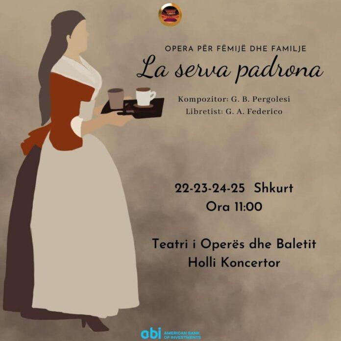 “La serva padrona” është një vepër plot humor, që e sjellin artistët e Teatrit Kombëtar të Operës dhe Baletit. Ky vit sjell me vete, në TKOB, risinë e platformës “Opera për Fëmijë e Familje”. Do të jetë “Zonja shërbëtore” vepër e kompozitorit Giovanni Battista Pergolesi që do të afrojë në dyert e Teatrit Kombëtar të Operës dhe Baletit, prindër dhe fëmijë, gjyshër dhe gjyshe, për të kaluar një orë plot dëfrim. Me humorin e “thumbimet” e Vesponës, i cili do t’i bëjë fëmijët të qeshin me gjuhën e tij dhe planet që Serpina krijon me të. Kjo e fundit ka diçka tjetër në mendjen e saj dhe me ndihmën e shërbëtorit të heshtur, mashtron Uberton për t’u martuar me të. Dirigjent Dritan Lumshi, regjia Ada Gurra, skenografia/kostumografia Dea Bejleri. Rolet në shfaqje- Uberto: Artur Vera, Serpina: Rovena Xhelili, Vespone: Kristian Koroveshi, Ogert Islami. Clavicembalo Etrita Ibrahimi dhe Kuinteti i Orkestrës Simfonike të Forcave të Armatosura-Violinë I: Xhudi Dodaj, violinë II: Sonja Hoxhallari, violë: Stela Bello, violonçel: Remino Sula, kontrabas: Xhorxhio Spahi. Kjo shfaqje do të jetë përgjatë datave 22-23-24-25 shkurt në hollin koncertor të Teatrit Kombëtar të Operës dhe Baletit. “La serva padrona” konsiderohet si modeli i operës komike italiane. Pergolési ishte gjithashtu autor i muzikës fetare dhe muzikës së dhomës, si vokale ashtu edhe instrumentale. Ndër veprat e tij më të famshme janë “Lo frate ‘nnammorato” (1732) dhe “Stabat Mater” (1736).