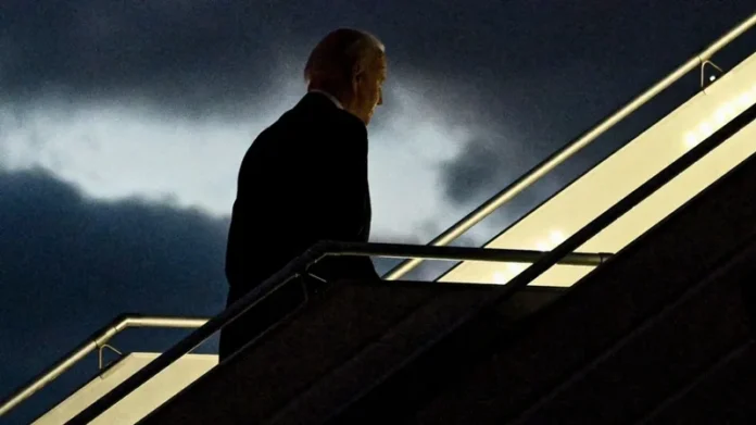 Skena u përsërit, por pak më ndryshe, me protagonist vetë presidentin amerikan. Biden po ecte shkallëve për të hipur në aeroplan dhe pak para se të arrinte te dera ai u rrezua.