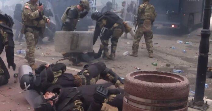 Siç shihet nga pamjet e publikuara nga REL, zona është përfshirë nga gaz lotsjellës, zjarr dhe shtëllunga tymi, ndërkohë që dëgjohen edhe sirena dhe shpërthime.
