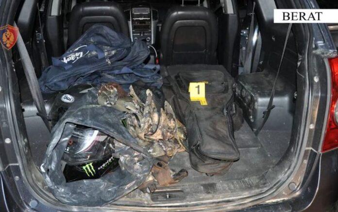 Shërbimet e Policisë, si rezultat i kontrolleve të imtësishme dhe informacioneve policore të siguruara, kanë bërë të mundur gjetjen e automjetit, të një motomjeti të vjedhur, me 2 skafandra, të veshjeve të kamuflazhit (xhup meshini), të një arme zjarri automatik me silenciator, të një pistolete me silenciator dhe të një sasie municioni luftarak.