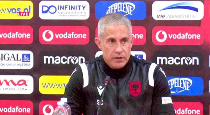 Trajneri i përfaqësueses kuqezi, braziliani Silvinjo, doli dje para gazetarëve në një konferencë shtypi, ku shpalosi objektivat e tij e të skuadrës për dy duelet e radhës në eliminatoret e Europianit 2024, në grupin E. “Ky grumbullim ka pasur vështirësitë e veta, nuk i kemi pasur gjithë lojtarët gjatë gjithë kohës. Por kemi bërë një punë të mirë. Është puna jonë të menaxhojmë situatat dhe lojtarët në fushën e lojës. Tani i njohim më mirë lojtarët. Jam i kënaqur nga impenjimi i tyre në fushën e lojës. Tani është puna jonë për të bërë menaxhimin e duhur për të marrë rezultat pozitiv. Jemi mësuar me presionin. Kemi përpara 7 finale, nesër luajmë të parën. Të gjithë jemi shumë të karikuar, luajmë në shtëpi dhe do të ketë shumë tifozë në stadium. Ekipi është në gjendje të mirë, por do të vendos në fund për formacionin. E rëndësishme është që ekipi të ketë ekuilibër në fushë, në të dy fazat. Kemi një grup shumë të mirë, që do të luajë fort dhe do të japë zemrën në fushë. Nuk do të shikoni nesër ekipin e Silvinjos, do të shikoni ekipin kombëtar të Shqipërisë që luan me 100 km/h. Jam i bindur se djemtë do të japin maksimumin, do të japin zemrën në fushë. Në një stadium të tejmbushur. Objektivi ynë është kualifikimi në Euro 2024. Lojtarët e dinë mirë rëndësinë e sfidës ndaj Moldavisë. Kam biseduar me ta. Jam i kënaqur me formën e skuadrës. Nesër do të marrim vendim për portierin titullar”, tha Silvinjo.
