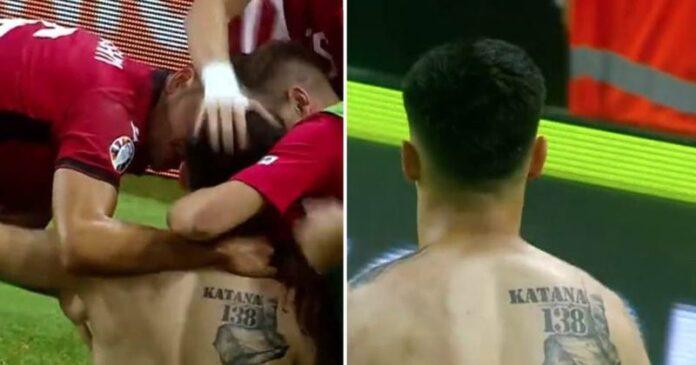 Mirlind Daku vulosi fitoren e Shqipërisë ndaj Polonisë në minutën e 62-të kur shënoi golin e dytë. Ai menjëherë hoqi fanellën për të festuar teksa vëmendjen e mori tatuazhi i tij në shpatull.