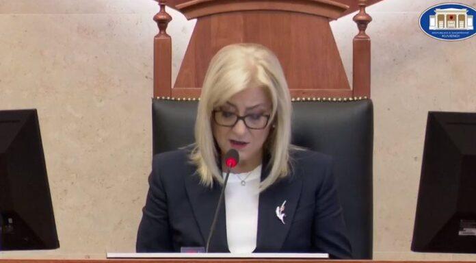 Kryetarja e Kuvendit Lindita Nikolla, në mbyllje të seancës plenare, lexoi një njoftim drejtuar Kuvendit nga kryetari i Partisë Demokratike, Lulzim Basha.