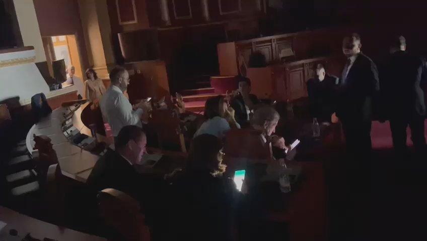 Ndërsa qëndrojnë të “ngujuar” në sallë, deputetët dëgjohen të këndojnë këngën “Mora fjalë” të Shkurte Fejzës që është kthyer në një “himn” për tifozët e Kombëtares Shqiptare.