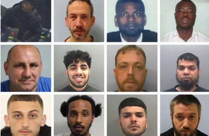 Janë 12 persona në listën e më të kërkuarve të Londrës për momentin, të dyshuar për kryerjen e krimeve që përfshijnë përdhunim, rrëmbim dhe vjedhje.
