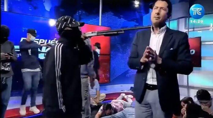 Një nga programte më të ndjekura të lajmeve në Ekuador, El Noticiero, po transmetonte drejtpërdrejt kur persona të armatosur hynë në studio. Kamerat u rrotulluan ndërsa gangsterët me kapuç godisnin stafin me pistoletë në dysheme. Më pas ata dolën në transmetim për 15 minuta, duke lëvizur me tabela të bandave për shikuesit e habitur dhe duke bërë selfie ndërsa tundnin hanxharet, dinamitët dhe mitralozët.