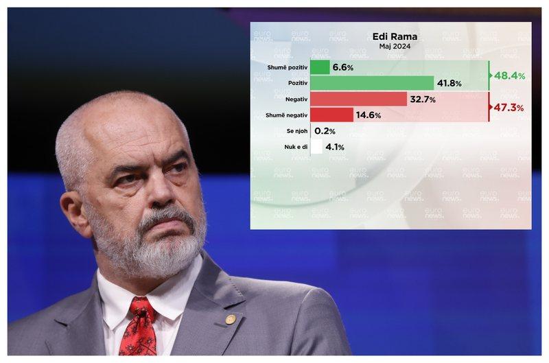 Sipas Barometrit – Euronews Albania (48.4 %) e të intervistuarve ballë për ballë nga Data Centrum, kanë mendim pozitiv për kreun e qeverisë, ndërsa (47.3%) kanë mendim negativ për të.