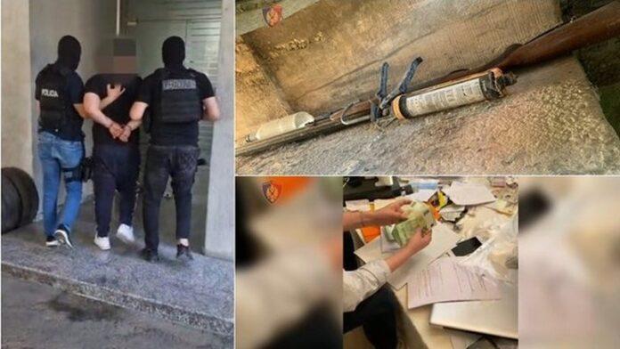 Gjatë kontrolleve janë sekuestruar sendet që kanë shërbyer për kryerjen e veprës penale apo sende që përbëjnë produkt të veprës penale, shumat e parave 25 mijë euro, 20 mijë paund, sende me vlerë, një ambient i përshtatuar për falsifikim të dokumentave, kompjutera e printera që shërbenin për shitje dhe transferta monedha virtuale – BITCOIN, sasi lëndësh narkotike e dokumenta të tjera me rëndësi për hetimin.