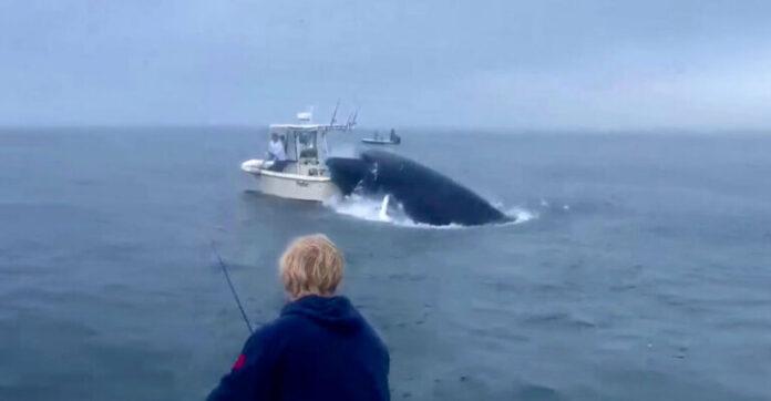 Momente tmerri kanë përjetuar dy peshkatarë në New Hampshire të SHBA-ve, kur kanë parë një balenë të përplaset me varkën e tyre. Në videot e regjistruara nga peshkatarë të tjerë, balena shihet duke dalë nga uji dhe duke u përplasur me varkën, duke i hedhur në ajër dy burrat.