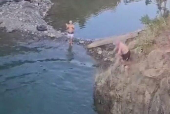 Në një moment, ai ka vendosur të hidhet nga një shkëmb në një pellg.