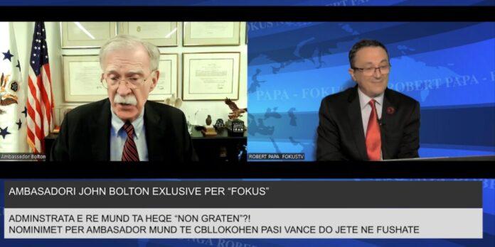 Ja kur do vijë ambasadori i ri i Shteteve të Bashkuara të Amerikës në Tiranë dhe kush e kërkon eliminimin fizik të kandidati republikan për Shtëpinë e Bardhë, Donald Trump. Këto dhe të tjera detaje i ka dhënë ish-këshilltari i Sigurisë në SHBA, John Bolton. Ky i fundit në një intervistë ekskluzive për “FokusTV” dhe gazetën “SOT”, zbulon se pse Kongresi amerikan s’e ndalon dot presidentin e SHBA të tërhiqet nga NATO. Po ashtu ai tregon se çfarë do të ndodhë më “non-gratën” e Sali Berishës nëse Trump zgjidhet president i SHBA-ve.