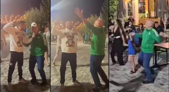 Ndërsa në një video tjetër shihet me disa njerëz që kërcejnë valle popullore, pamje të cilat i ka shoqëruar dhe një shkrim.