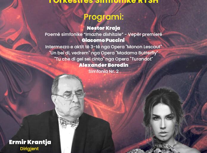 Poema “Imazhe digjitale” premierë botërore në koncertin e Orkestrës Simfonike të RTSH. Koncerti mbrëmjen e së premtes sjell veprën e kompozitorit Nestor Kraja, por pjesë janë dhe vepra të autorëve të tjerë botërorë. Në sallën e Universitetit të Arteve në Tiranë do të mbahet koncerti i Orkestrës Simfonike të RTSH-së, që vjen drejtuar nga mjeshtri i dirigjimit Ermir Krantja. Përveç simfonisë nr. 2 të Aleksandër Borodinit premierë në vendin tonë, si edhe disa arieve të kompozitorit Giacomo Puccini, për nder të përvjetorit të tij do të ekzekutohet dhe poema “Imazhe digjitale” e kompozitorit Nestor Kraja (premierë botërore). Edhe më parë në jetën artistike në vend janë ekzekutuar veprat të kompozitorit Nestor Kraja, ku këtë herë do të jetë koncerti i Orkestrës Simfonike të RTSH që e sjell premierë botërore. Koncerti do të zhvillohet edhe me pjesëmarrjen e sopranos Besa Llugiqi.