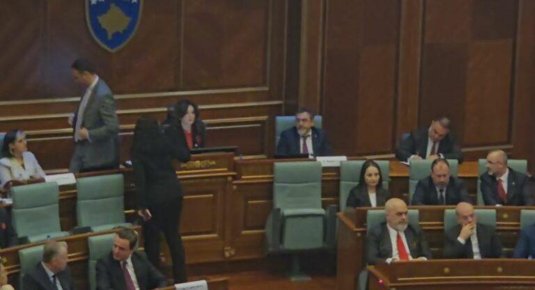 Ndërkohë që ende nuk ka përfunduar mbledhja e Kuvendeve të Kosovës dhe Shqipërisë, Presidentja e Kosovës Vjosa Osmani është larguar nga salla.