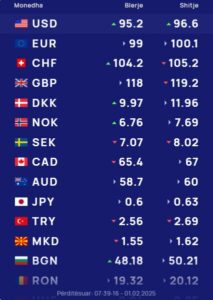 Ndërkohë monedha evropiane euro do blihet me 99 lekë dhe do shitet me 100.1 lekë.