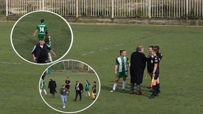 Ky i fundit ushtroi presion ndaj arbitrit, madje shkoi deri aty sa i tregoi rregulloren, e preku dhe e shtyu këtë të fundit. Skandali vijoi kur në pamjet e siguruara nga Report TV dëgjohen “lumë të sharash” edhe nga Koço Kokëdhima, që i thotë arbitrit “jepe në tavolinë, bq m***”.