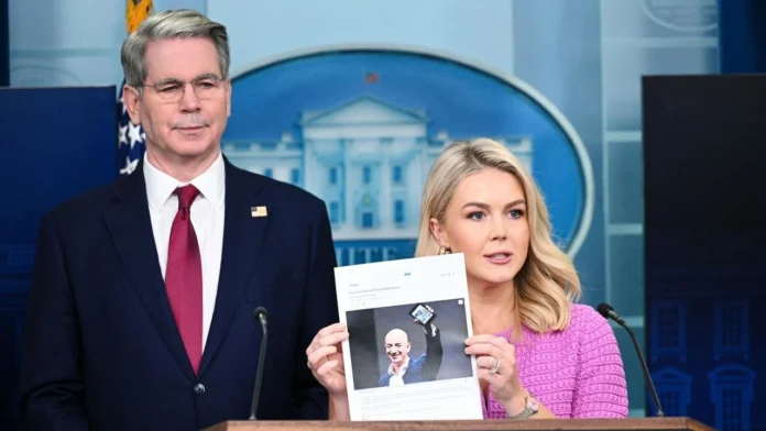 Kur një gazetar e pyeti se cili është statusi i marrëdhënies së Trump me themeluesin e Amazon, Jeff Bezos, Leavitt e shmangu përgjigjen. “Nuk do të flas për marrëdhëniet e presidentit me Jeff Bezos. Por do t’ju them se ky është sigurisht një akt armiqësor dhe politik nga ana e Amazon”, shtoi ajo.