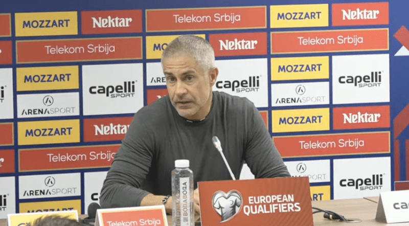 Një gazetar serb i pranishëm në sallë, e pyeti atë për festën e golit të Rei Manajt. Sulmuesi lushnjar festoi me shqiponjën dykrenare duke ngjallur një lloj irritimi te serbët e pranishëm.