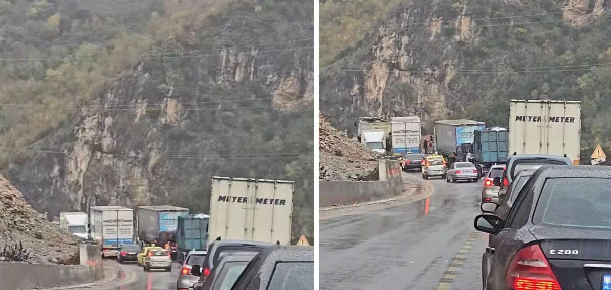 Shkak për situatën e krijuar janë bërë reshjet e dendura të shiut, shoqëruar herë pas here me mjegull të dendur, të cilat kanë ulur ndjeshëm shikueshmërinë dhe kanë vështirësuar lëvizjen e mjeteve. Përveç kushteve të pafavorshme atmosferike, punimet që po kryhen në disa segmente të këtij aksi të rëndësishëm rrugor kanë shtuar edhe më shumë ngarkesën dhe vonesat në qarkullim.
