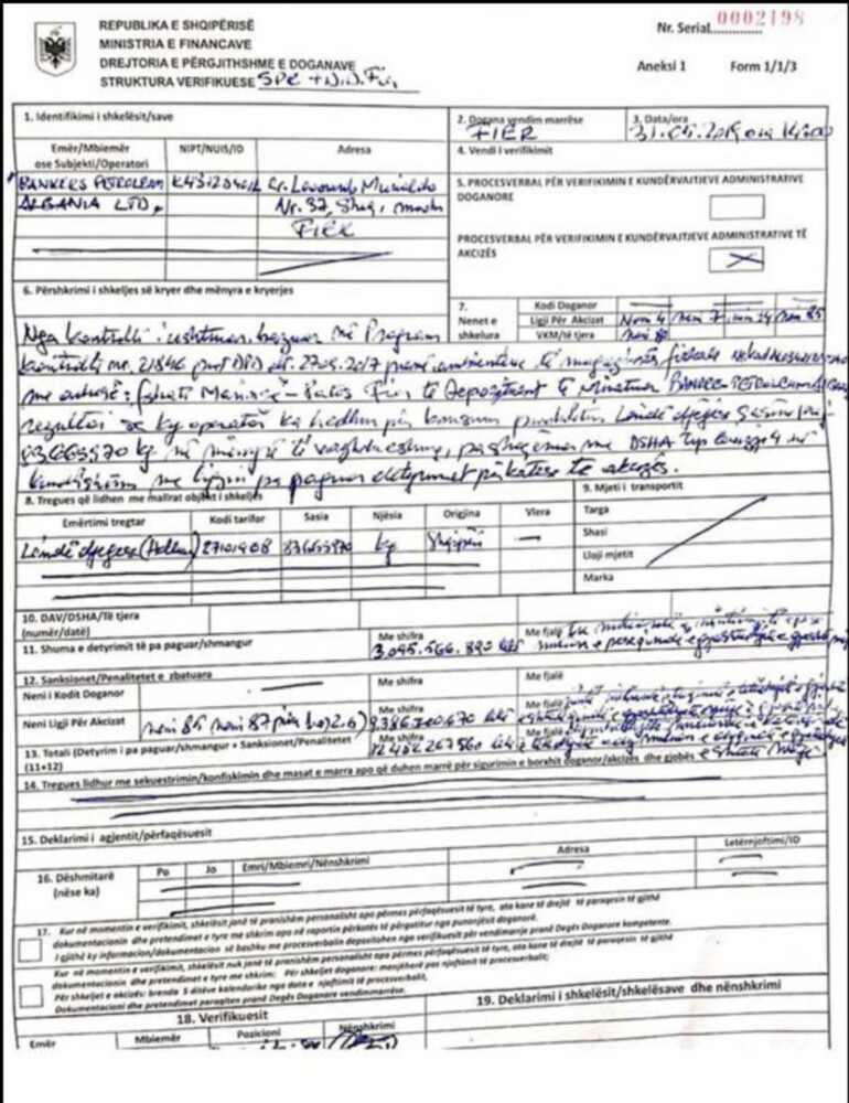 Agjentët e Byrosë Kombëtare të Hetimit (BKH) kanë mësyrë ditët e fundit në Ministrinë e Financave, për të marrë nga arkivat e këtij institucionin, dokumentin zyrtar për faljen e gjobës 120 milionë euro, që ish-ministrja Anila Denaj u bëri kinezëve të “Bankers” në vitin 2019. Dosja e “Bankers Petroleum Albania” ka kaluar prej muajsh në SPAK dhe në kuadër të hetimeve, është kërkuar dhe dokumentacioni zyrtar që është mbajtur nga shteti shqiptar për këtë masë administrative, si dhe procedura e ndjekur për faljen e saj. Kompania “Bankers Petroleum” është gjobitur nga 3 inspektorë të Hetimit Doganor, pas Akt-Kontrollit Nr. 290345 Prot., datë 13.12.2016 dhe Akt Kontrollit e Proces-Verbalit të datës 22.09.2017, sepse refuzoi të lejonte kontrollin në depot doganore.