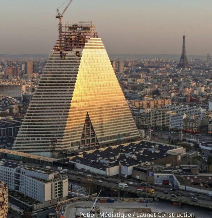Tour Triangle, piramida prej xhami 180 metra e lartë që po ngrihet në Porte de Versailles në arrondissement-in e 15-të, pritet të hapet në gjysmën e dytë të vitit 2026.