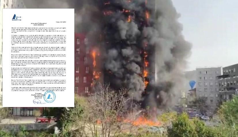 Kompania “Arlis Ndërtim” ka reaguar përmes një deklarate për shtyp pas zjarrit që përfshiu një pallat në Tiranë, duke shprehur solidaritet me banorët e prekur dhe duke garantuar rikthimin e plotë të objektit në gjendjen fillestare.